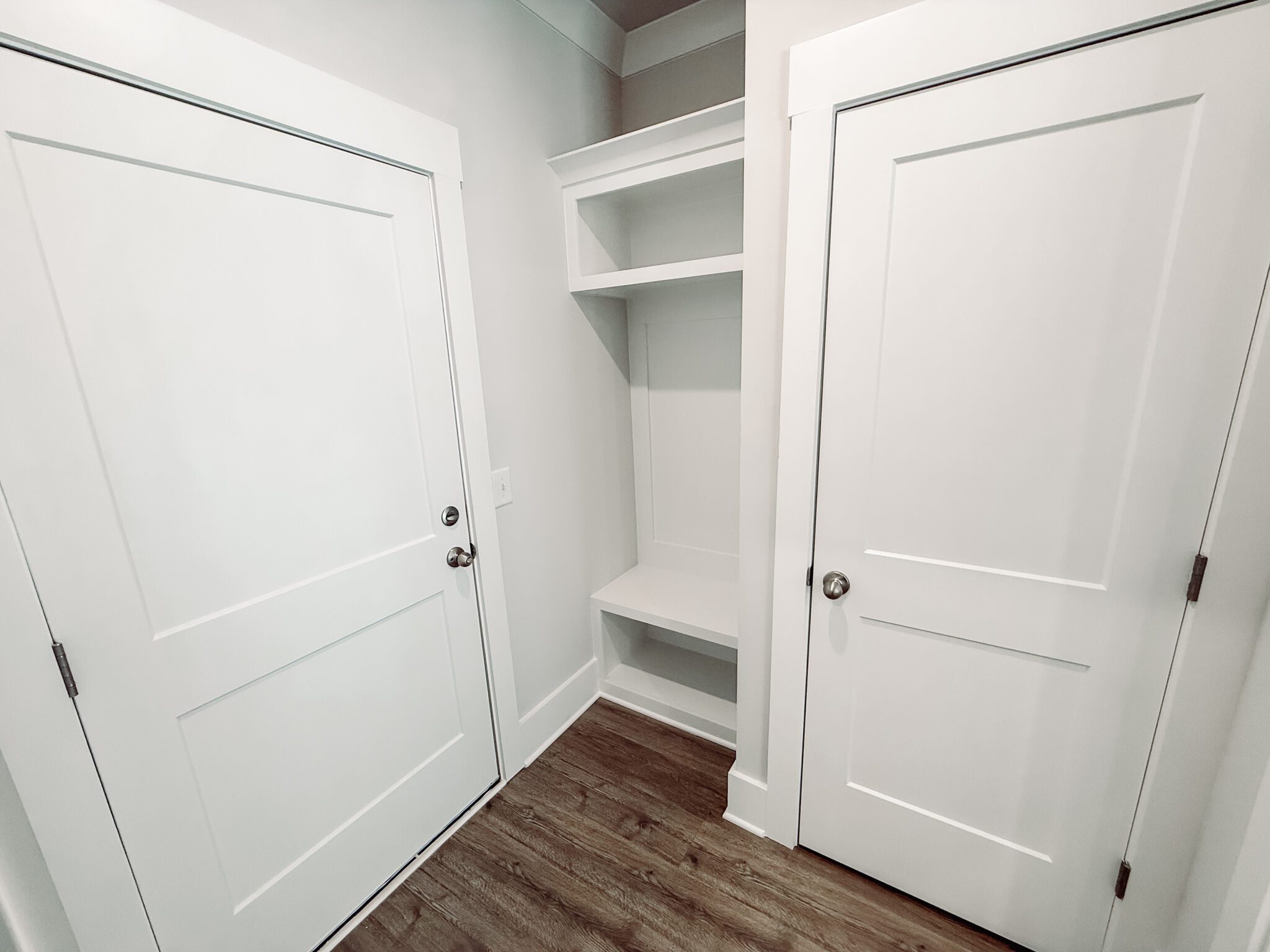 Additional features include a built-in mud bench, custom cabinetry in the laundry room, flood lighting, window blinds throughout, a garage door opener with two remotes, and a covered back porch—perfect for enjoying the professionally landscaped homesite, which is included in the listing price.