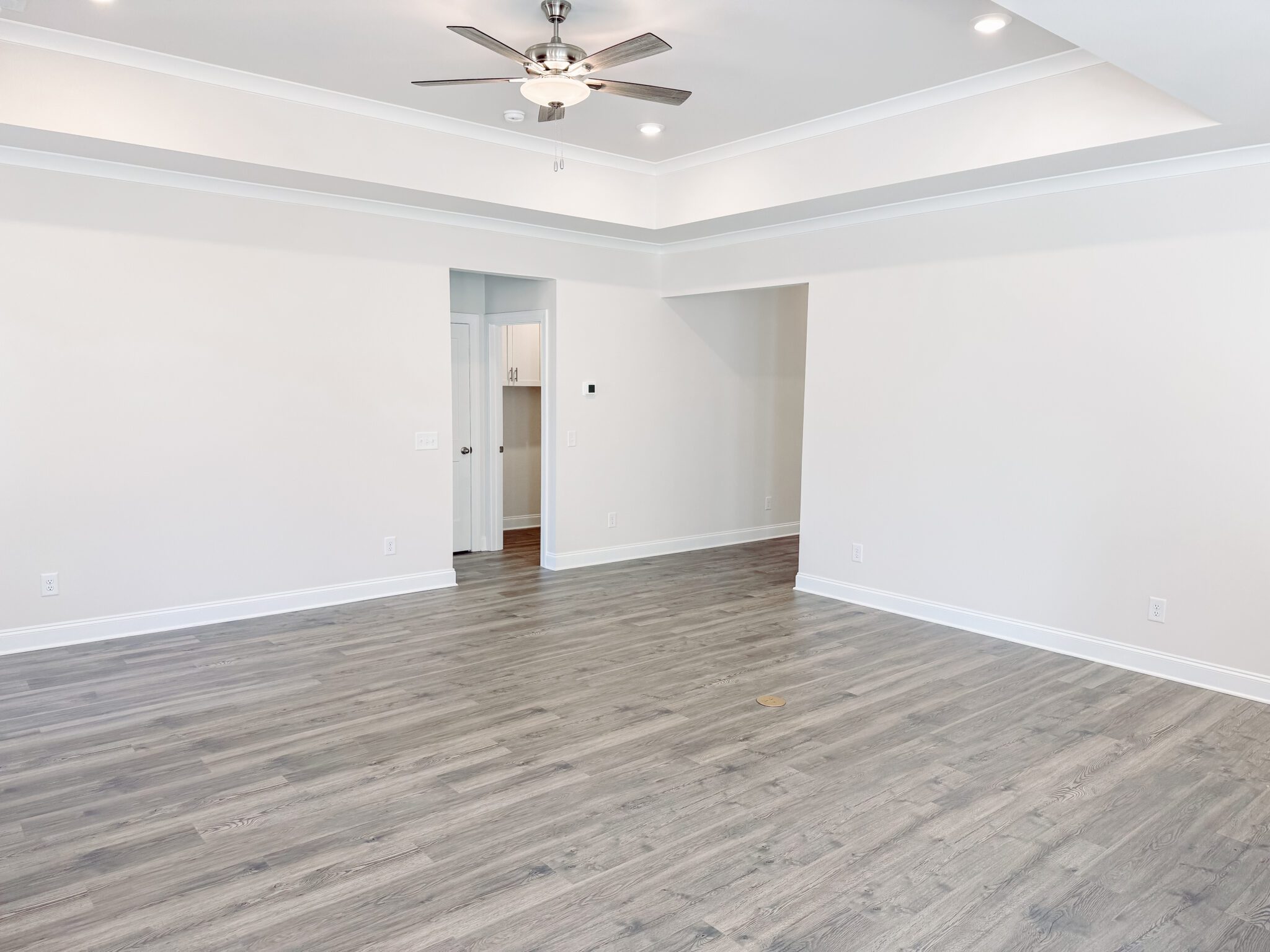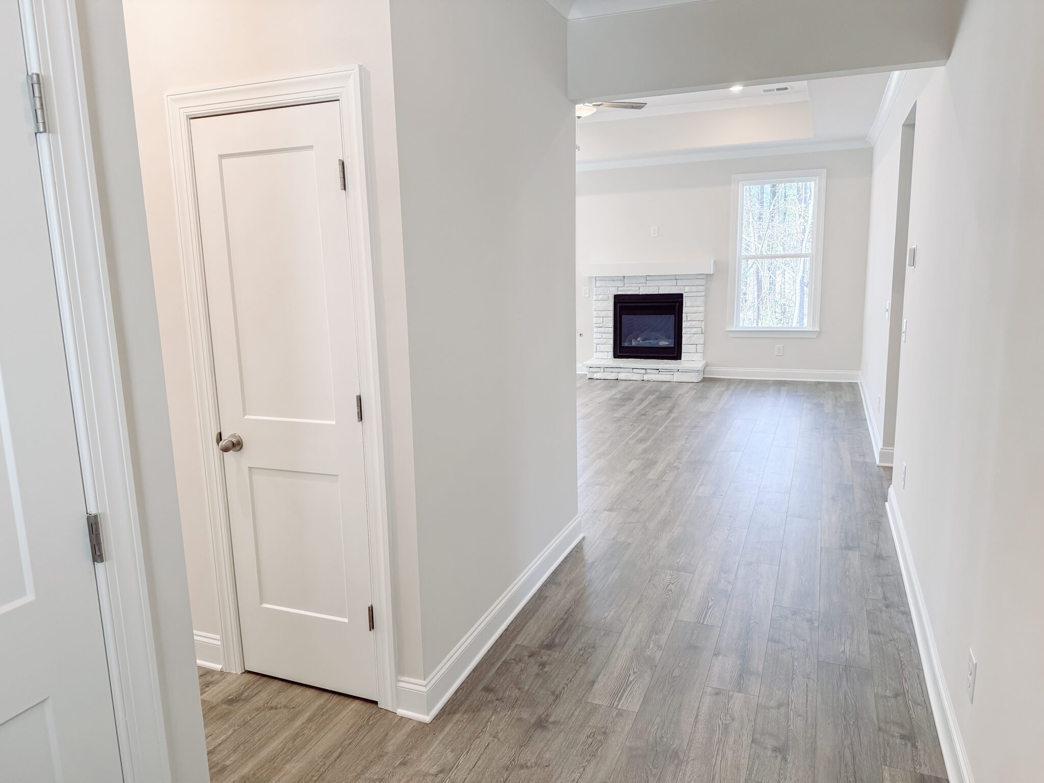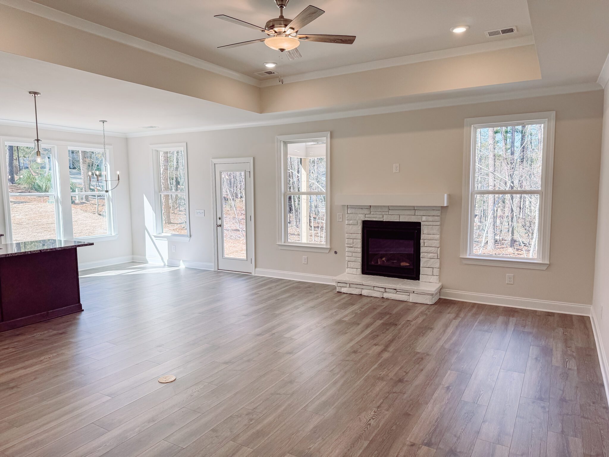 Step inside to discover LVP flooring throughout the main living areas, a modern kitchen with granite countertops, stainless steel appliances, and elegant 42-inch cabinetry. The spacious family room features a gas fireplace and ceiling fan, perfect for relaxing or entertaining guests.